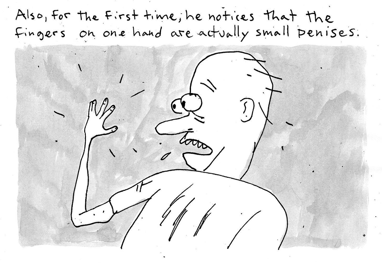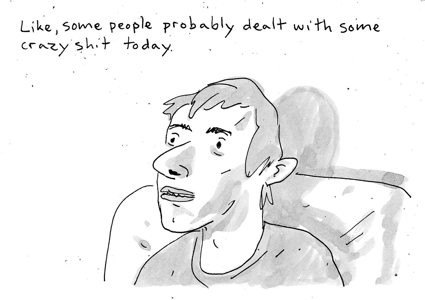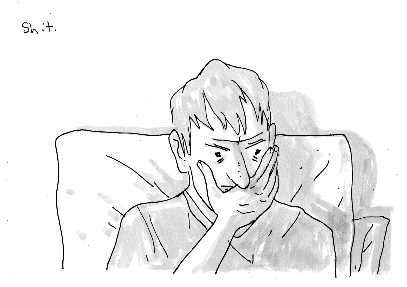 Examples may include: climate change, that mysterious thing hanging off the underside of the car that keeps dragging on the ground, coal mining, how the hell the hair around your asshole tied itself into a bow, AI, etc…Start your comic. Draw yourself doing something. Don’t use narration yet.