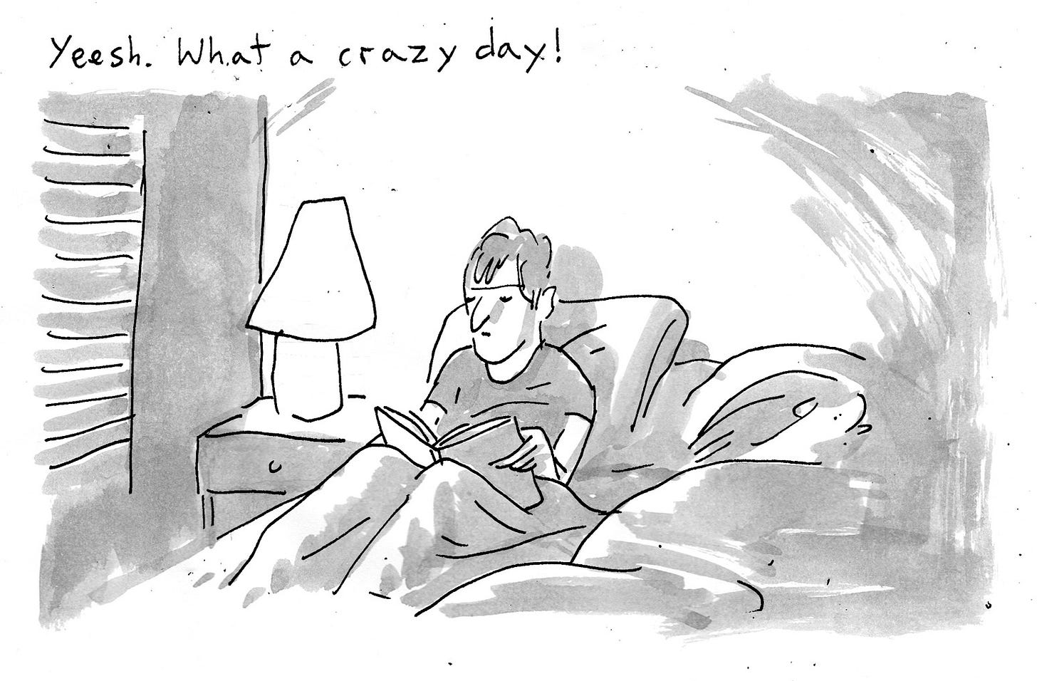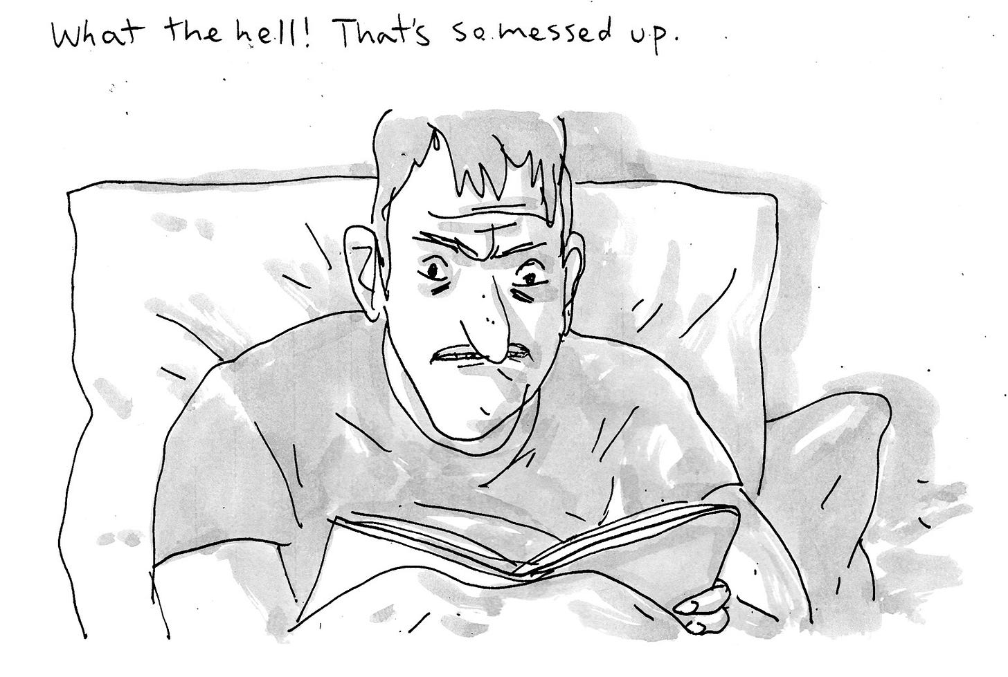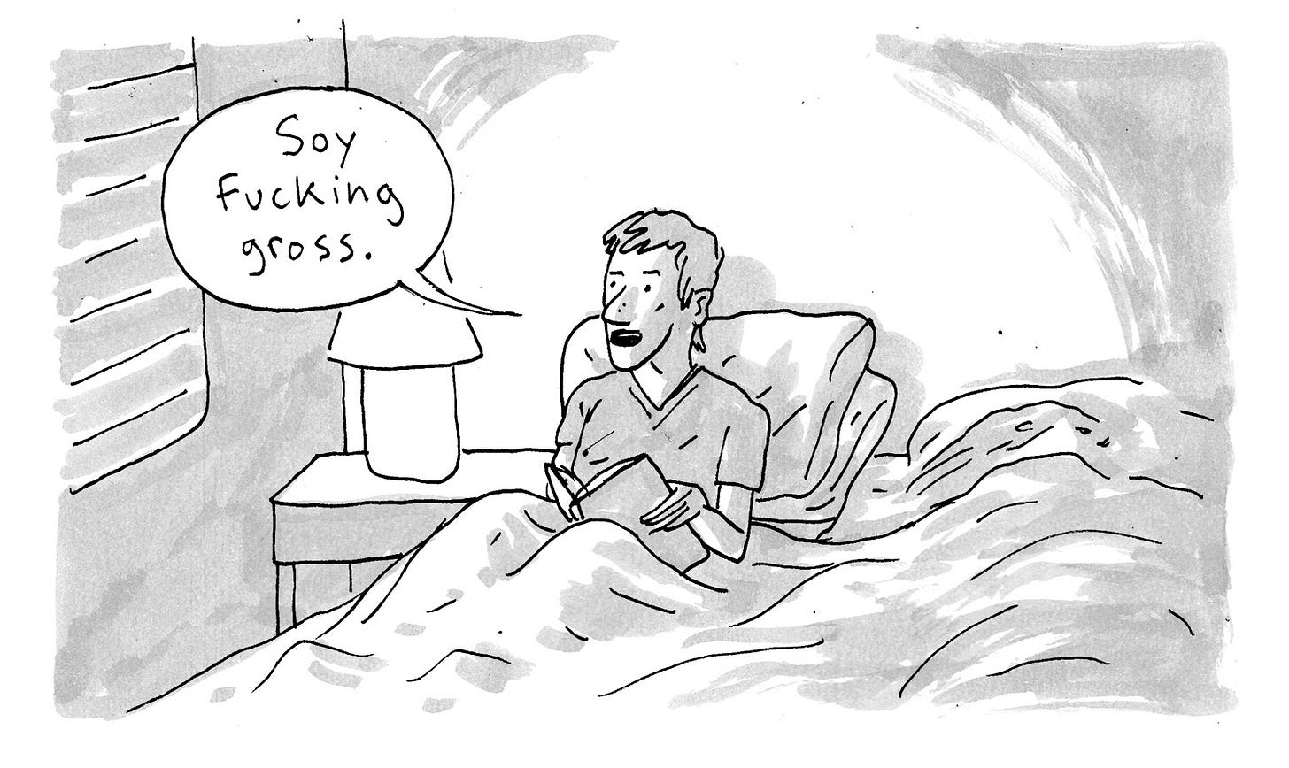 Examples may include: climate change, that mysterious thing hanging off the underside of the car that keeps dragging on the ground, coal mining, how the hell the hair around your asshole tied itself into a bow, AI, etc…Start your comic. Draw yourself doing something. Don’t use narration yet.