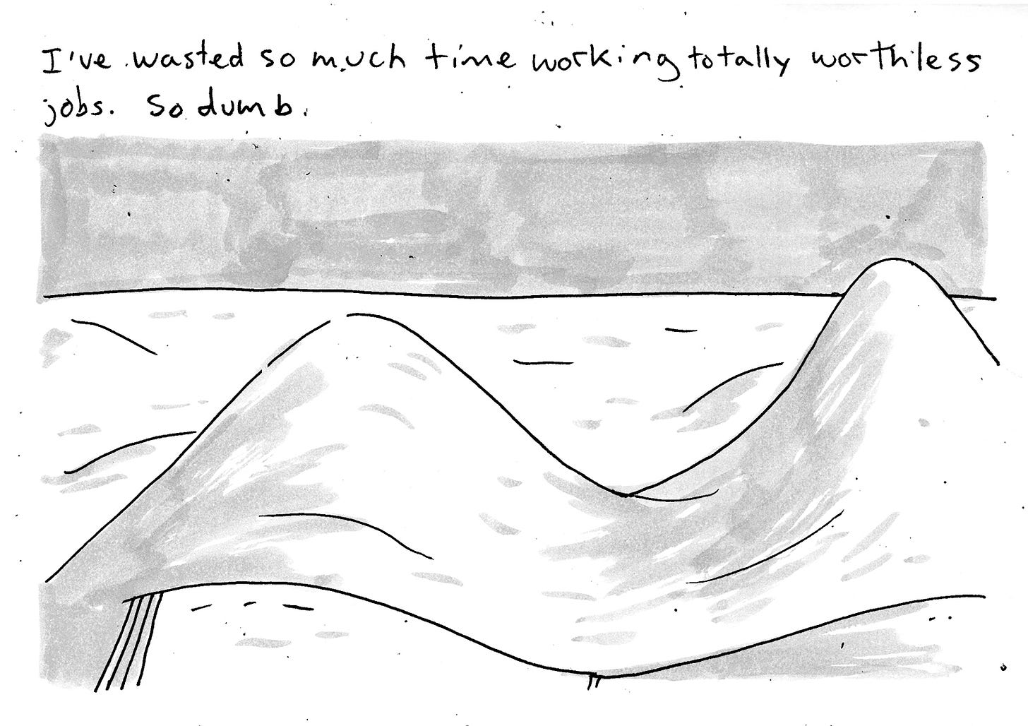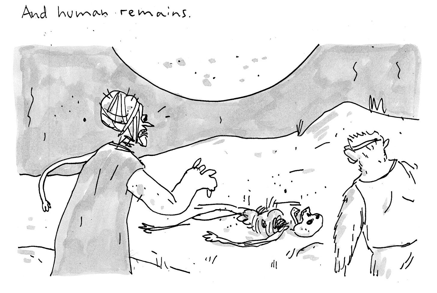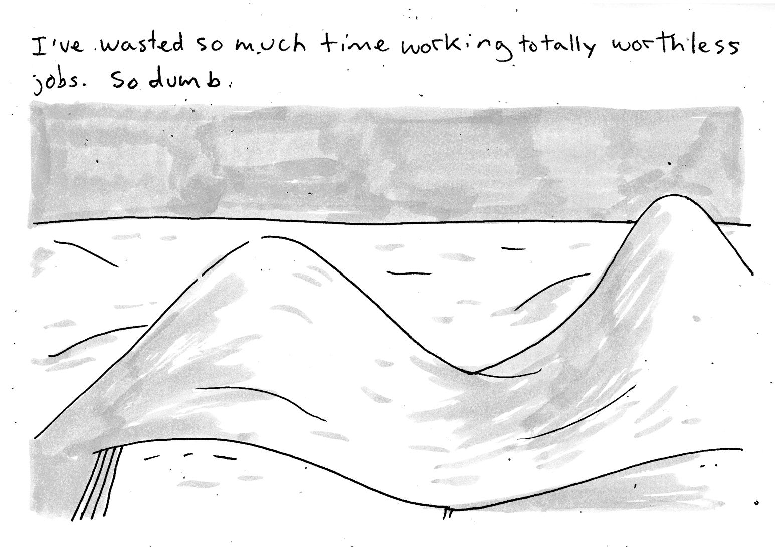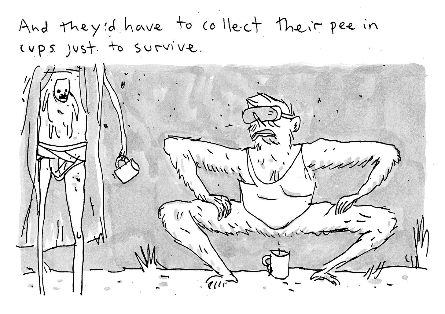 With this comic, The Future Is Shit, I wanted to figure out how to tell a story about my climate change fears that was true, but also fun to read. I wanted to take climate change seriously without having to be serious, if that makes sense? I had a lot of fun making it but it really solidified my fear of both climate change and giant, creepy future-wolves.
