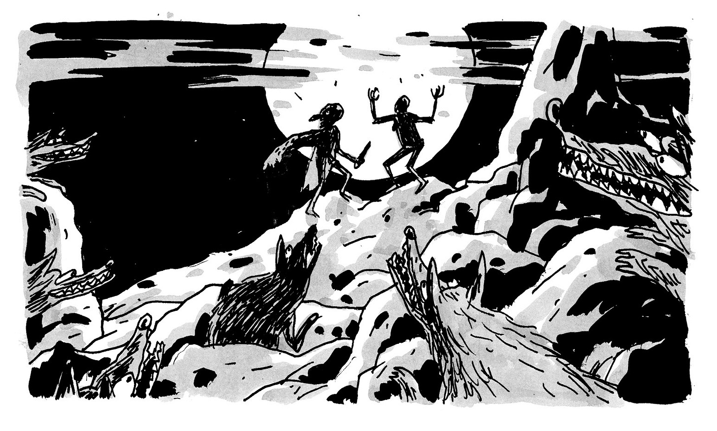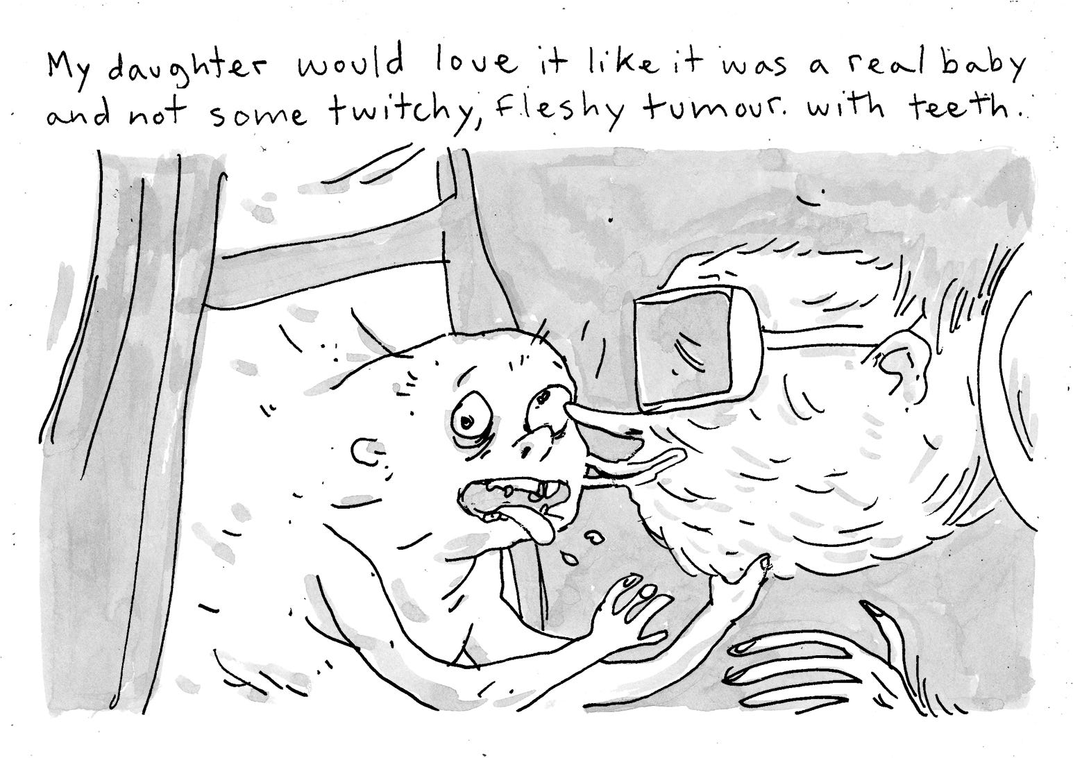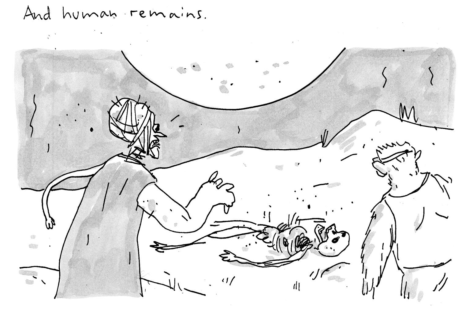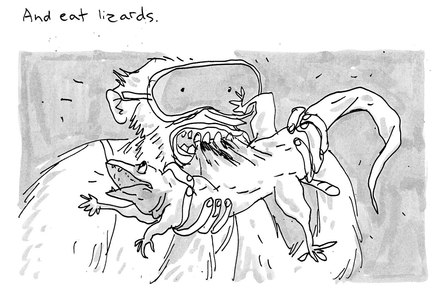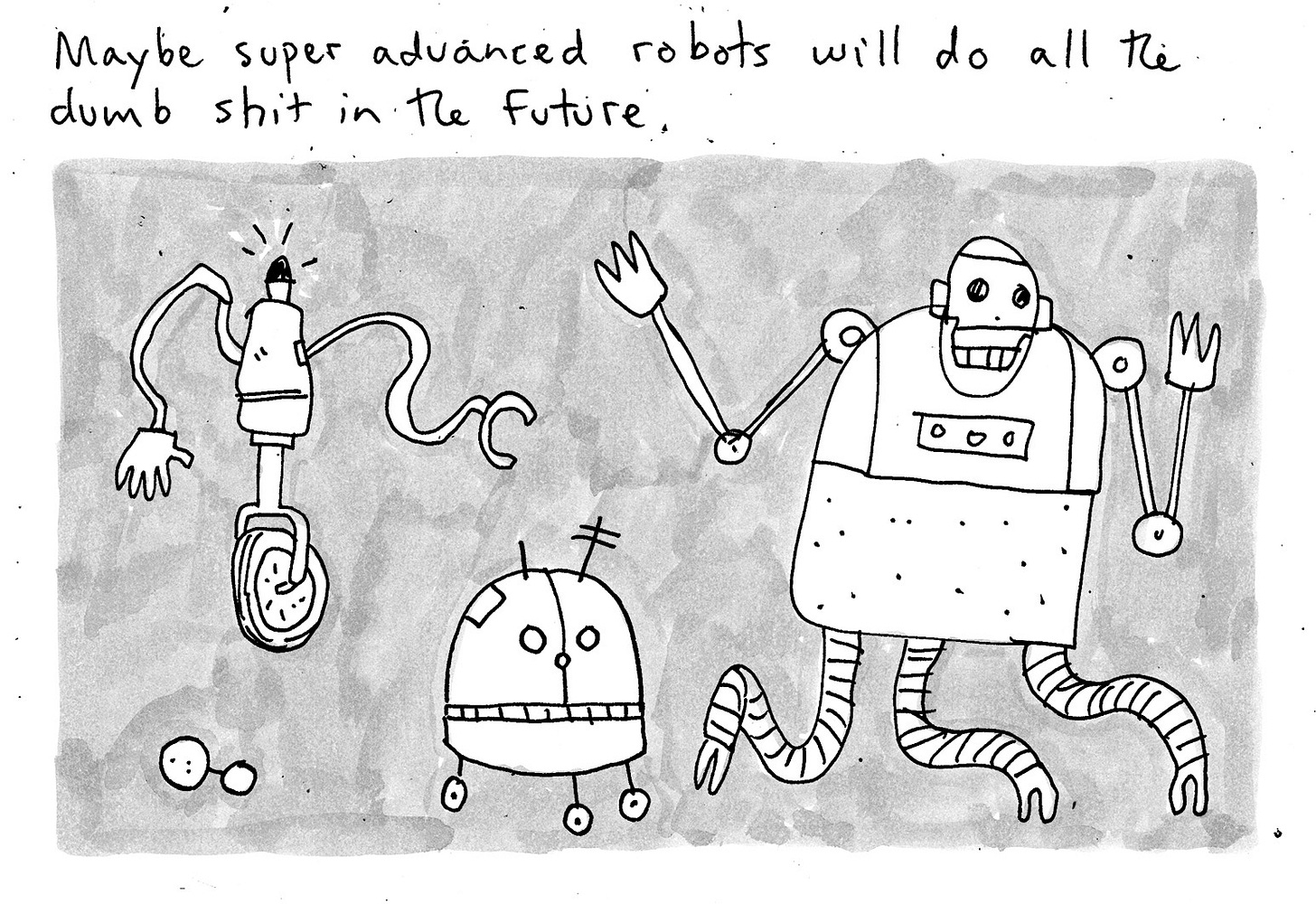 With this comic, The Future Is Shit, I wanted to figure out how to tell a story about my climate change fears that was true, but also fun to read. I wanted to take climate change seriously without having to be serious, if that makes sense? I had a lot of fun making it but it really solidified my fear of both climate change and giant, creepy future-wolves.