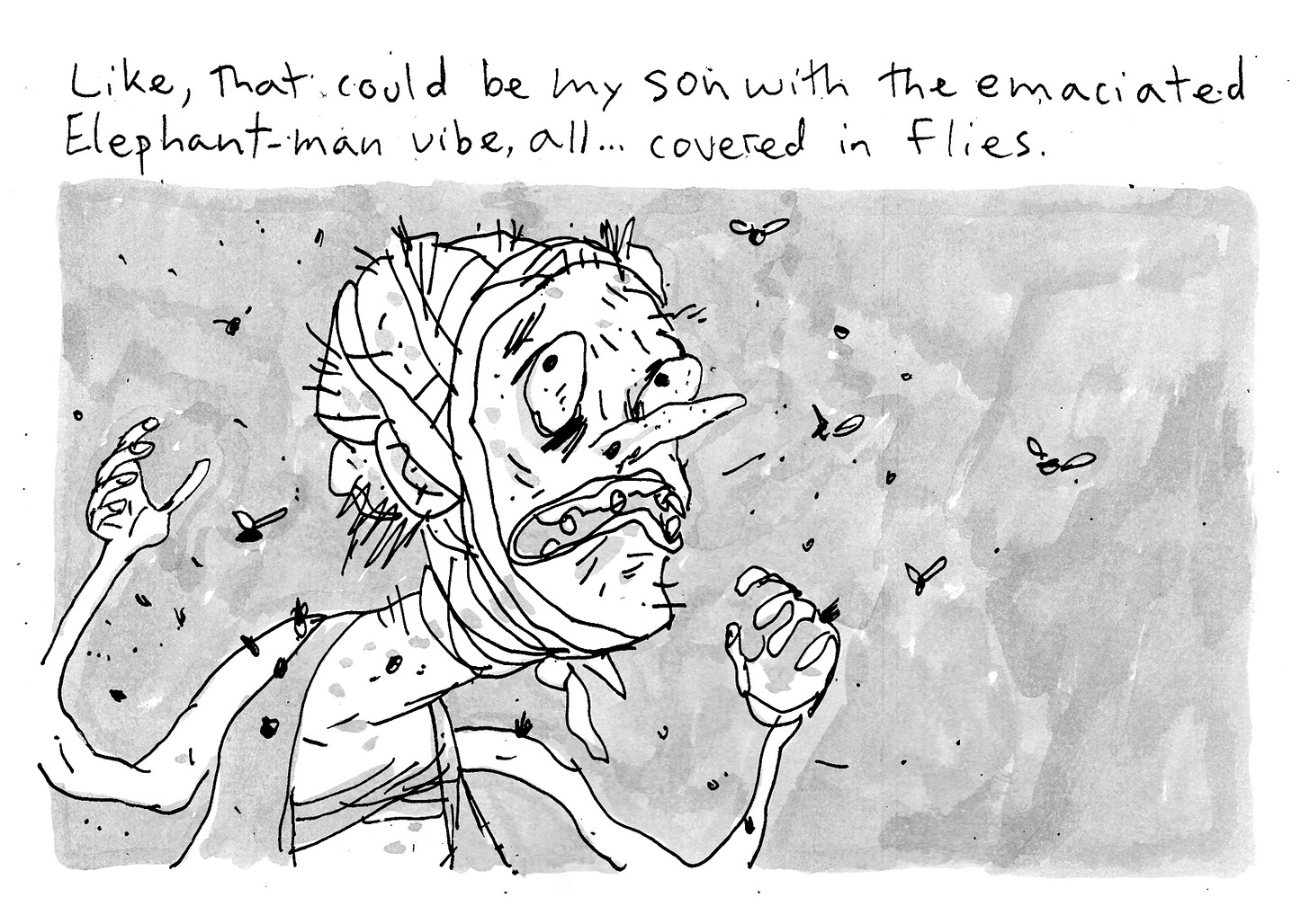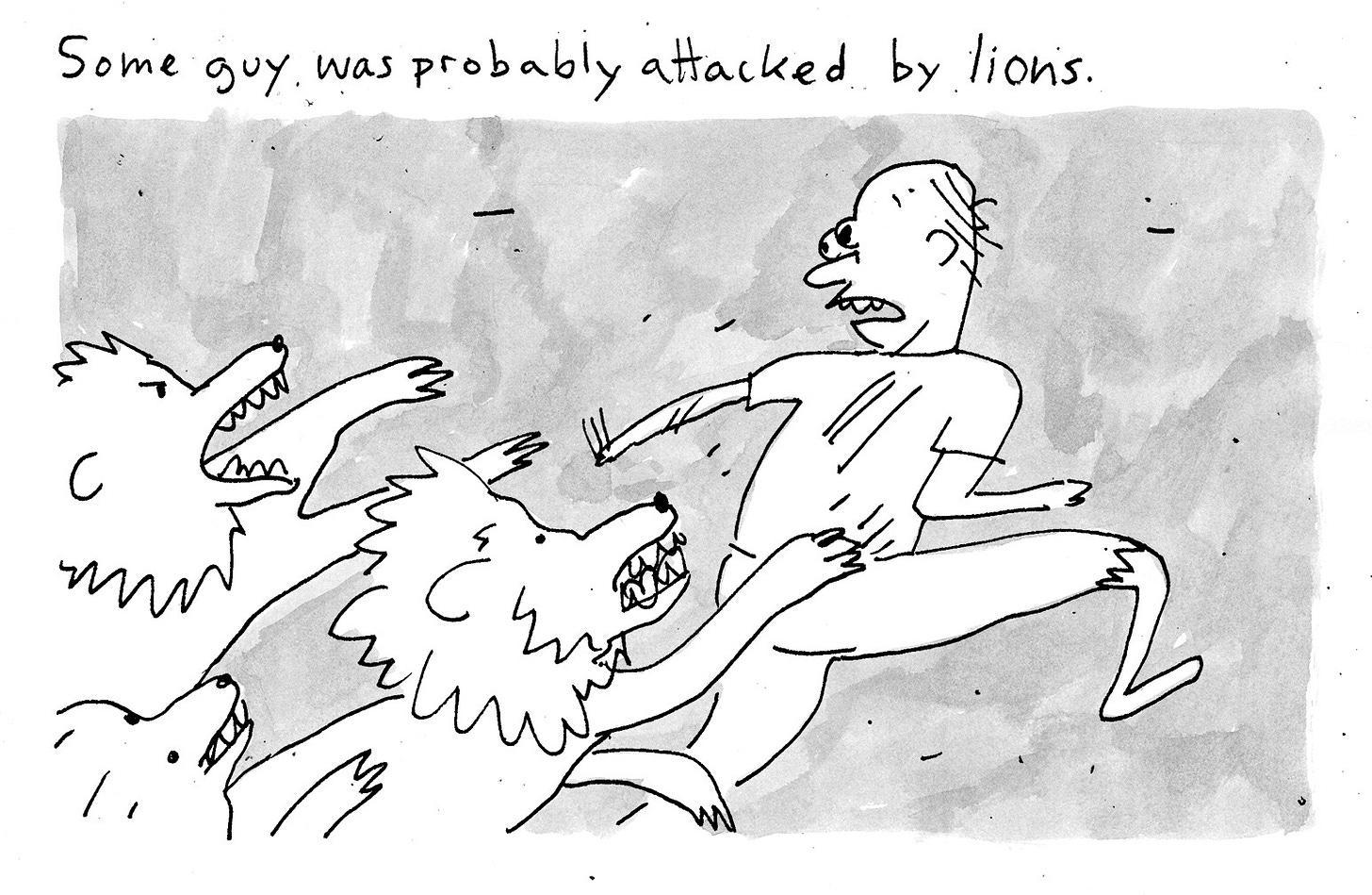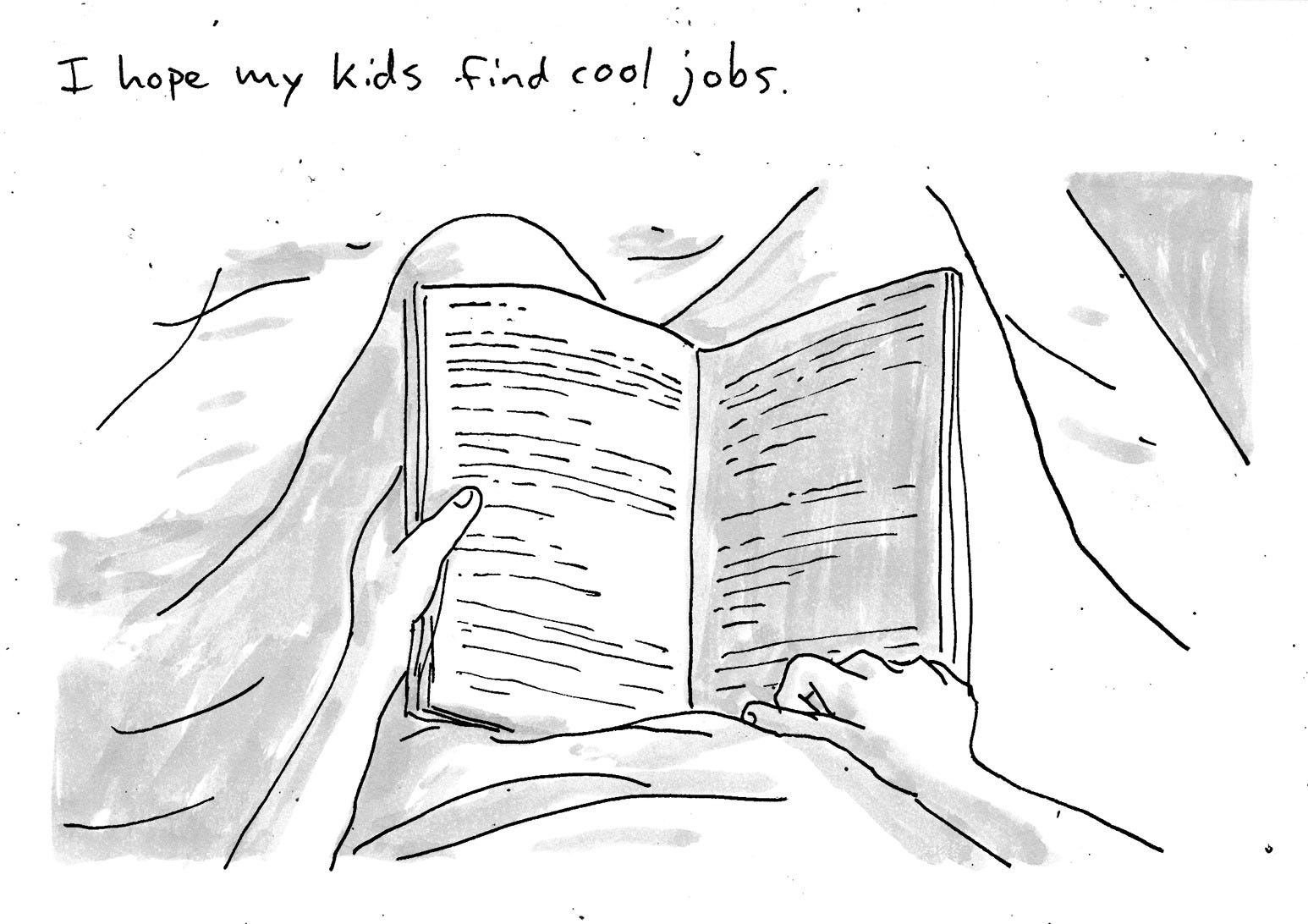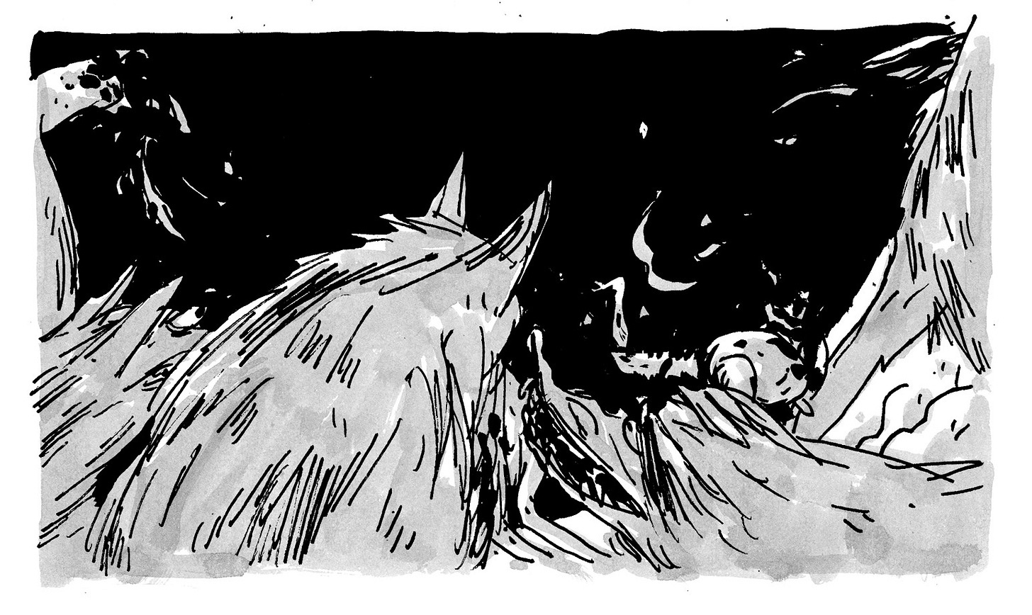 With this comic, The Future Is Shit, I wanted to figure out how to tell a story about my climate change fears that was true, but also fun to read. I wanted to take climate change seriously without having to be serious, if that makes sense? I had a lot of fun making it but it really solidified my fear of both climate change and giant, creepy future-wolves.
