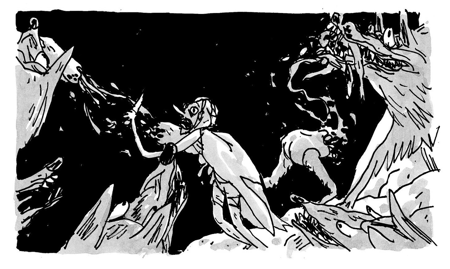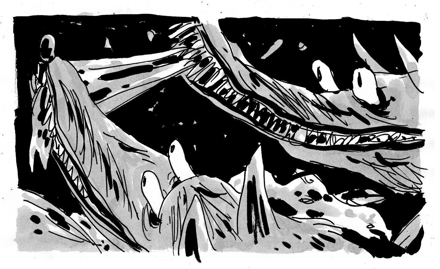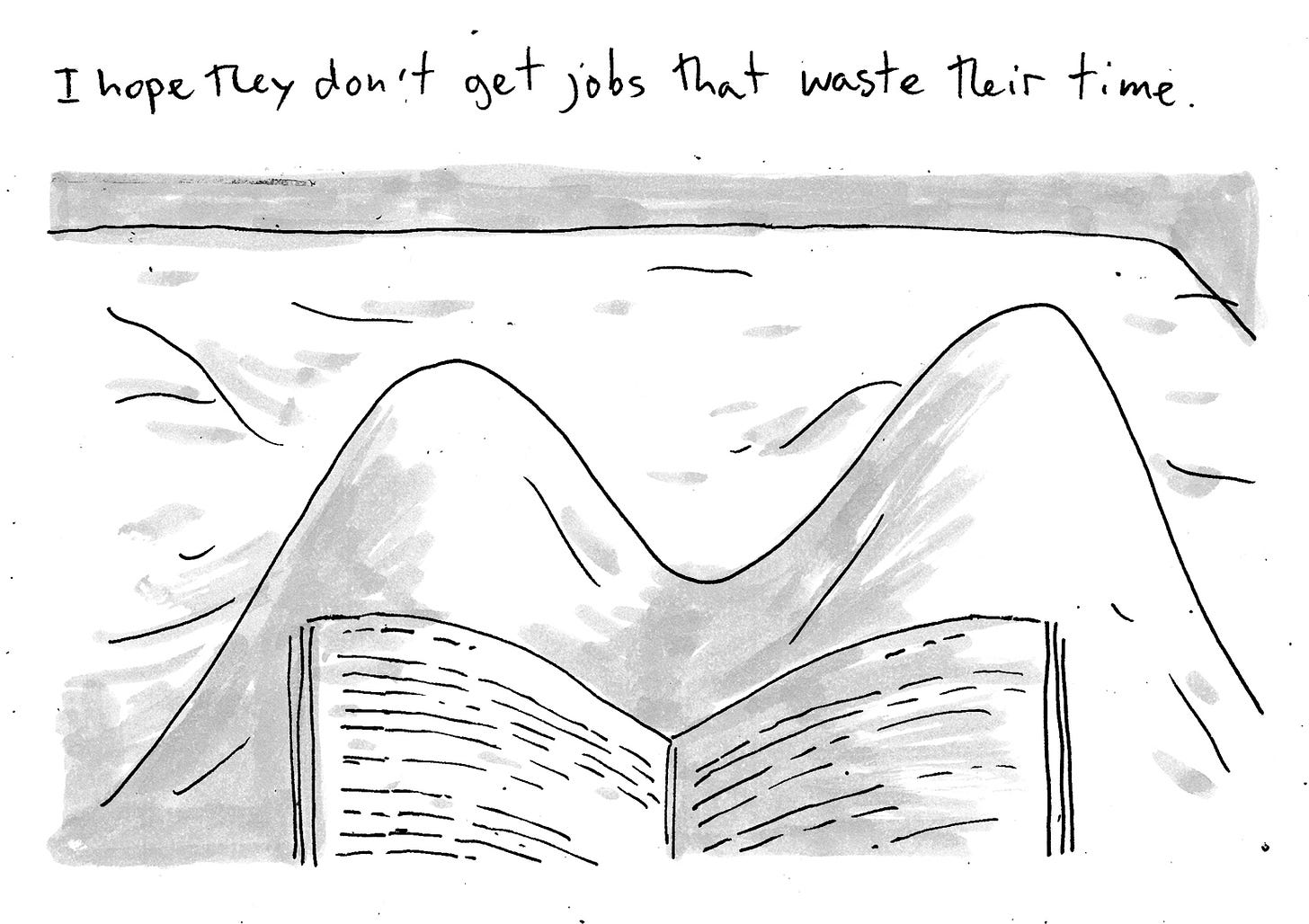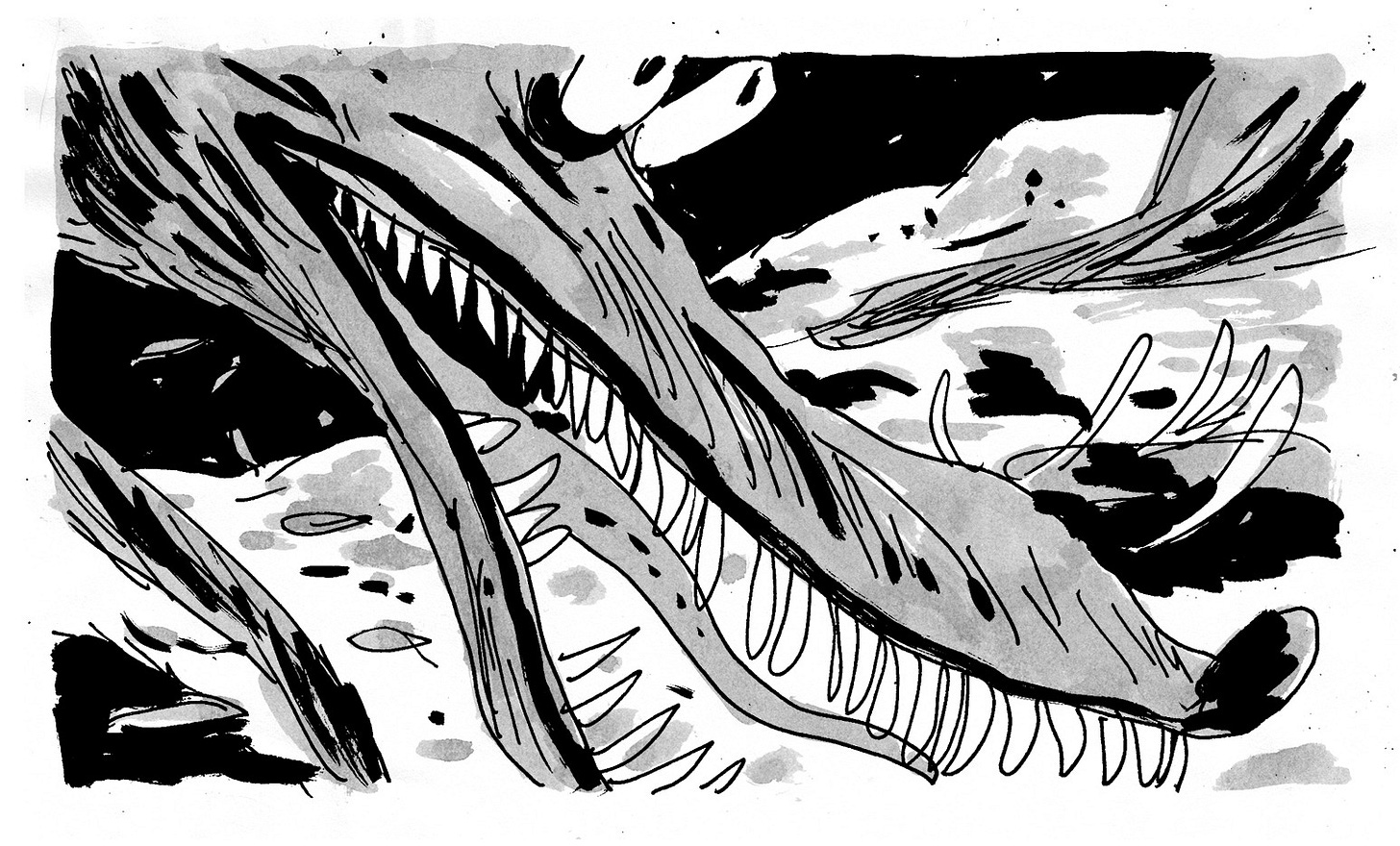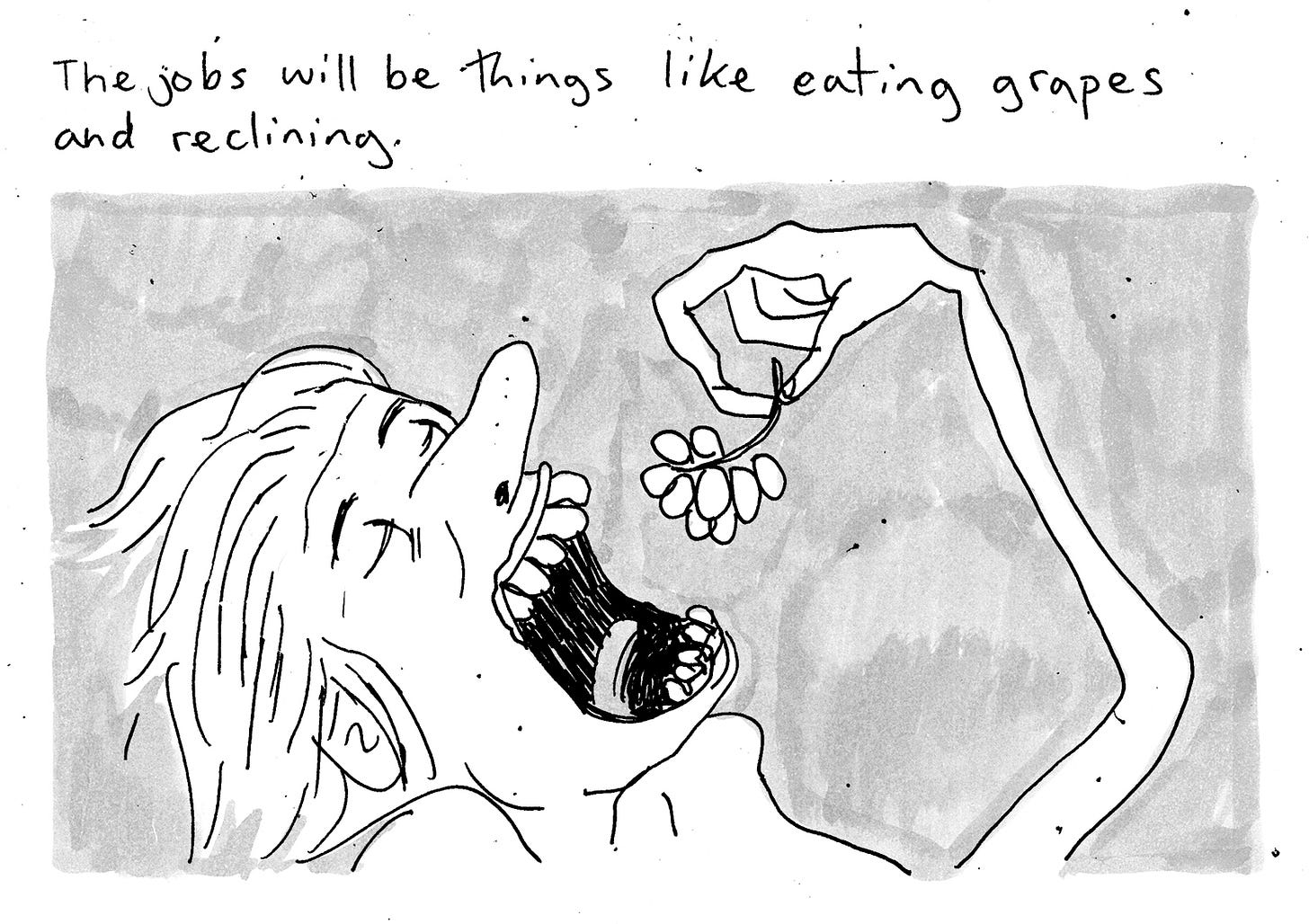 With this comic, The Future Is Shit, I wanted to figure out how to tell a story about my climate change fears that was true, but also fun to read. I wanted to take climate change seriously without having to be serious, if that makes sense? I had a lot of fun making it but it really solidified my fear of both climate change and giant, creepy future-wolves.
