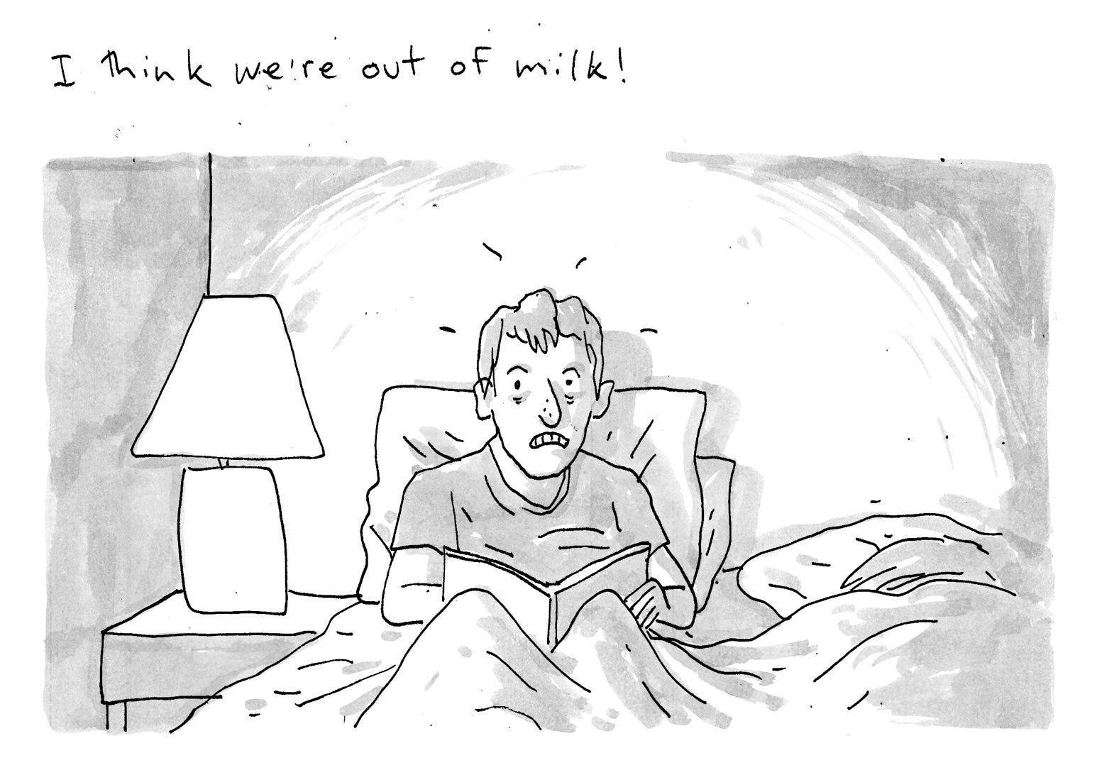 Actually, you know what else is interesting? The way my thoughts often turn into worst case scenarios! I imagine horrible stuff! Car crashes, meteors, shark attacks, huge waves of molasses swallowing the neighborhood! I don’t think I’m the only one either, I think lots of people do that (well, maybe not the molasses one, but they should). I wonder if there’s a biological reason for it, like, maybe by imagining horrible things we guard ourselves against them emotionally? I don’t know, but it’s interesting that I can go those places so easily when I let my mind drift.