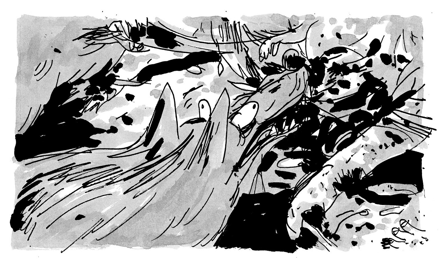 NOTE: Speculate wildly and allow yourself to be as silly and weird as you actually are in your own mind. Harness the power and insanity of your brilliant, stupid, chaotic brain!Draw some of the stuff that comes up in your narration and jump back and forth between that and images of your chosen situation. Allow situations in one visual world to effect the other, to compliment or contrast.