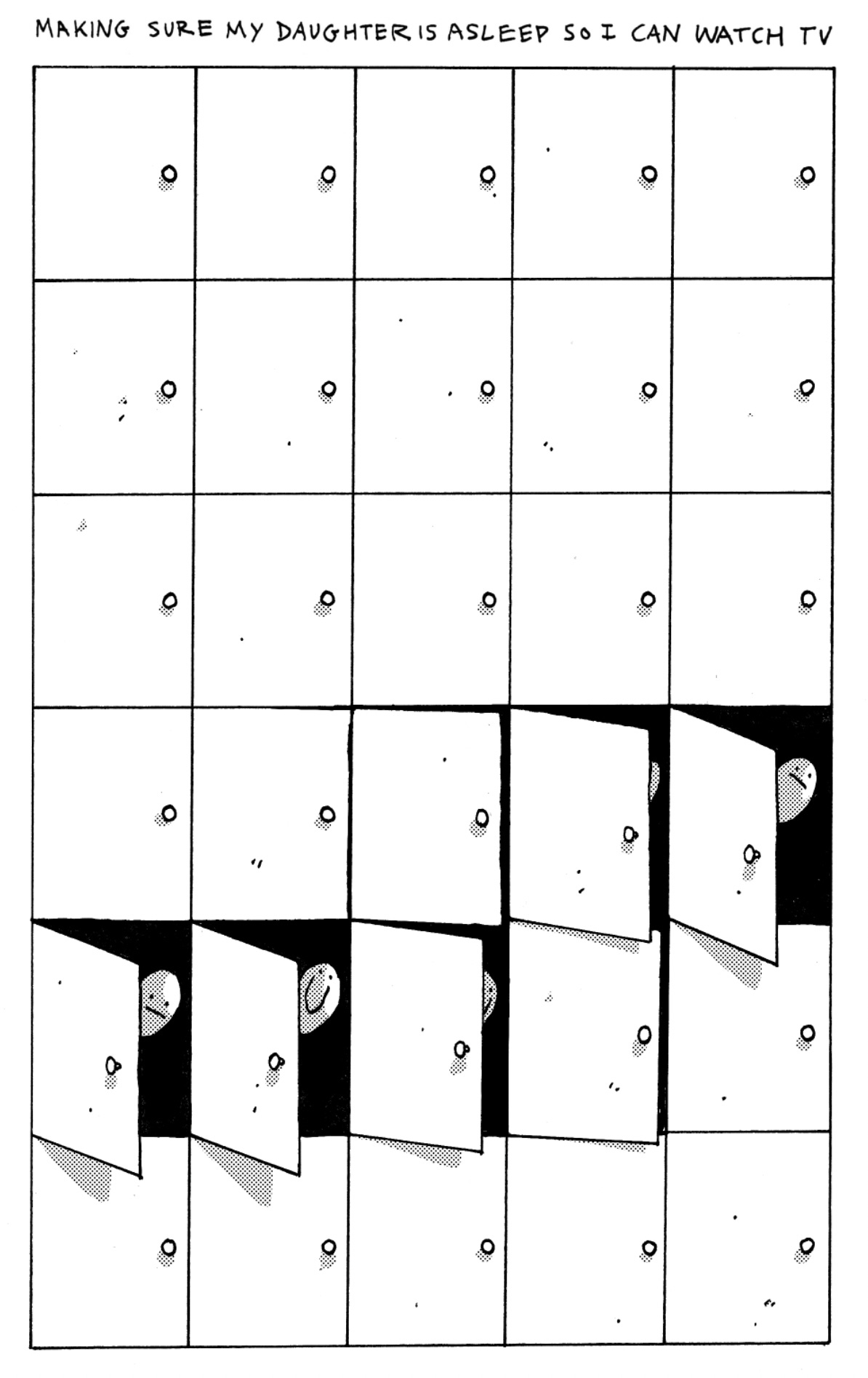 Keep your visuals simple enough that your panels read as a single, overall composition or pattern first, and a comic second. This last rule is really the goal here, so even if you rudely ignore my other brilliant rules, stick to this one.