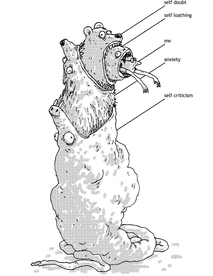 Could this be about you? If you are anything like me, you can make it about yourself. Could these be stages from a relationship? Emotions? Thoughts? Stuff you love or hate or a problem or something? What about that night you peed on a possum by mistake? Remember that? That was so weird. Do something about that!