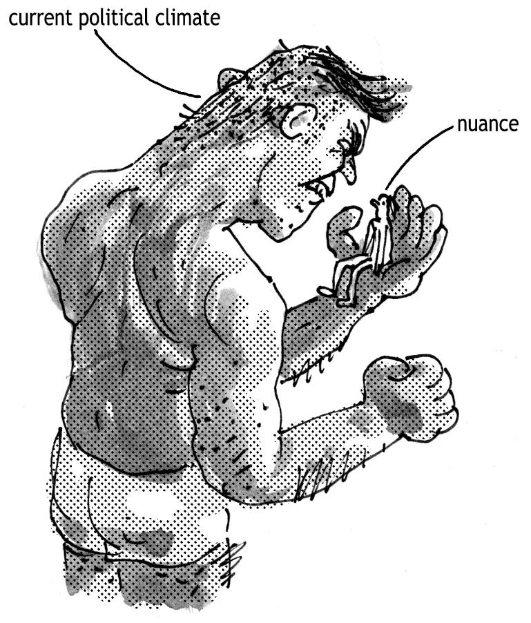 Treat the image like it’s a single-panel comic and add a caption at the bottom. Is it political? Is it personal? Work related? Is it a work of personal politics?